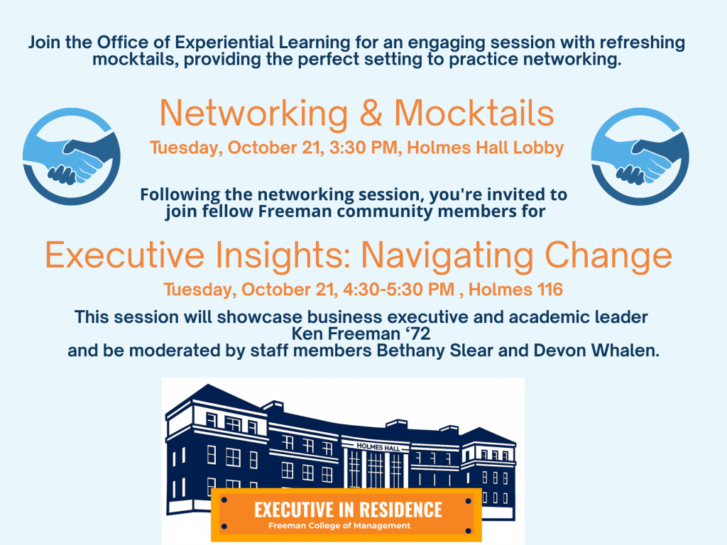 Networking and Mocktails BEFORE Executive Insights session with Ken Freeman ’72 posted on October 14, 2025