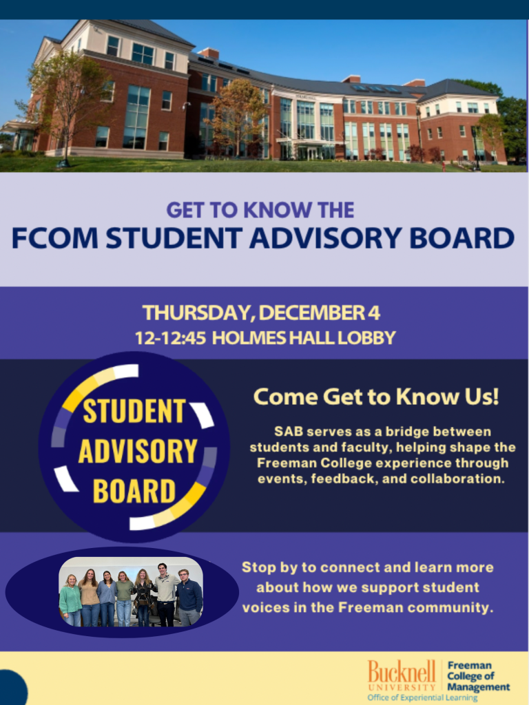All are welcome to come meet the Freeman College of Management Student Advisory Board posted on November 13, 2025