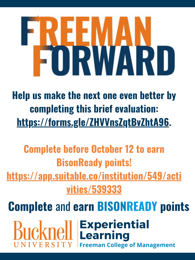 Complete the evaluation before October 12 to earn BisonReady points! BisonReady activity: https://app.suitable.co/institution/549/activities/539333
