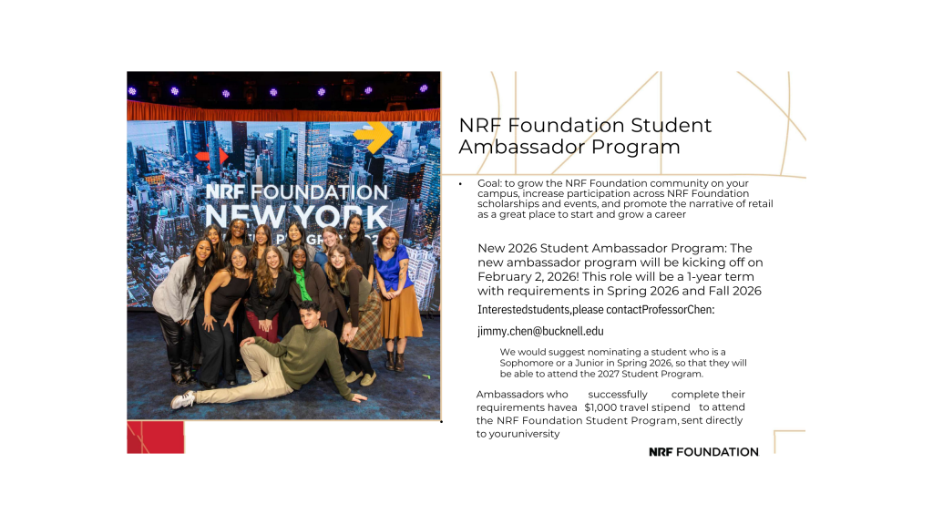 National Retail Foundation Student Ambassador Program–contact Professor Chen with interest posted on January 16, 2026
