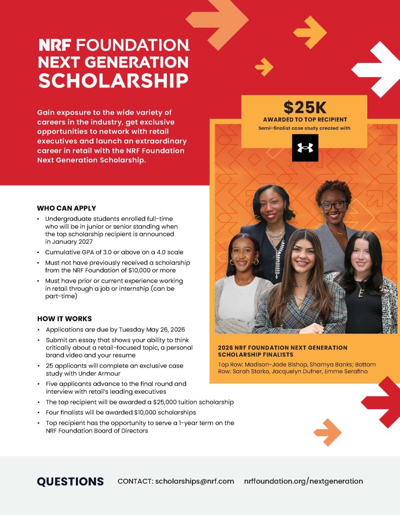 NRF Foundation University Challenge: These sessions will walk through the case competition structure, eligibility, awards, and timeline. The sessions will also feature guest speakers from Wayfair, our case partner, and students will have the opportunity to ask questions directly to the Wayfair team.