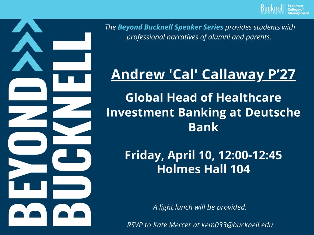 Beyond Bucknell: Andrew ‘Cal’ Callaway on April 10th posted on March 12, 2026 Join us on Friday, April 10th from 12:00-12:45 for this Beyond Bucknell session with Andrew ‘Cal’ Callaway in Holmes 104!
